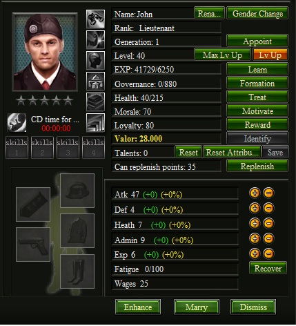 So now all you need to do is buy a wedding ring and press “Marriage”. You will now lose your secondary commander but gain the valor on the main. You should also notice that you commanders Lv. and stats have reset to Lv. 1. Generation indicates the amount of times a commander has been married, so looking at the picture below you can see the increase in valor (29.000) and generation (2).